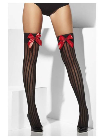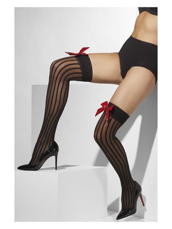 POŃCZOCHY CZARNE W PASKI Z KOKARDKAMI