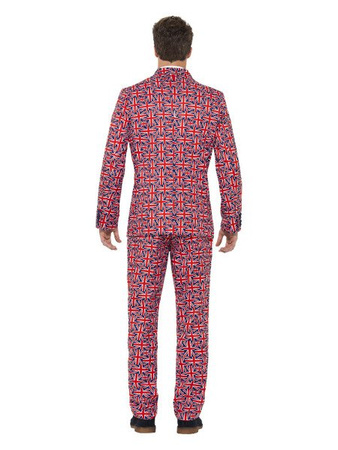 Garnitur Flaga Brytyjska, karnawał, halloween, kolor czerwony, zestaw zawiera: marynarkę, spodnie i krawat.