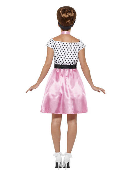 50s Rock 'n' Roll Costume, Pink, with Dress, Belt & Neckscarf