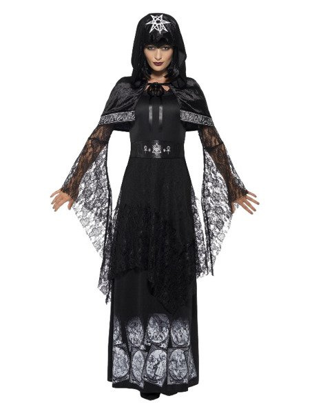 Strój Satanistki, Satanistka, Halloween, Szatan; w komplecie: suknia, pasek i peleryna; rozmiar XL