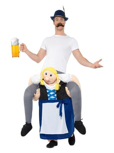 Strój w postaci bawarskiej kelnerki trzymającej człowieka.