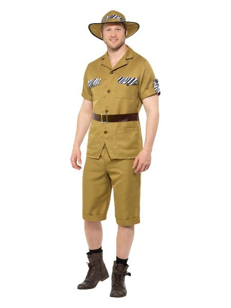 Strój Męski Safari, Bal przebierańców, Karnawał; w komplecie: koszula, spodenki i kapelusz; kolor khaki; rozmiar XL
