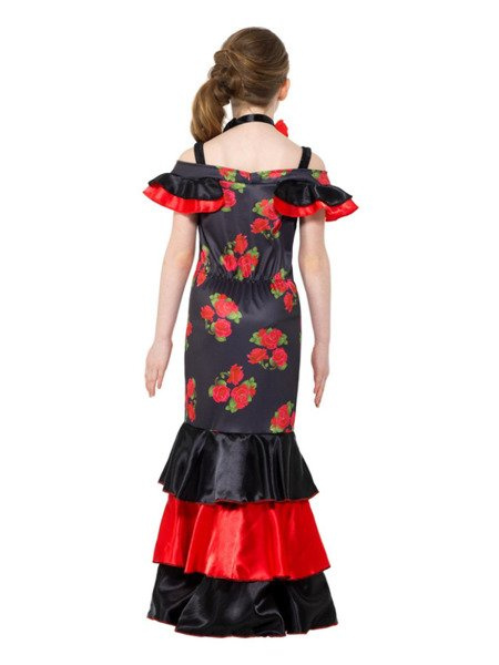 Posiada nadruk w postaci czerwonych róż i ozdobne falbany.