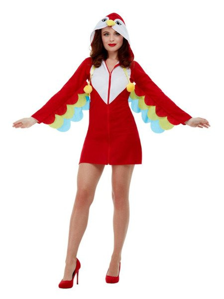 Strój Papugi, Papuga, Bluza/Sukienka, Karnawał; kostium wielokolorowy z kapturem; rozmiar XS