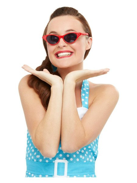 Okulary Rock & Roll, lata 50, 60, Pin Up, Rekwizyt, czerwone okulary z diamencikami