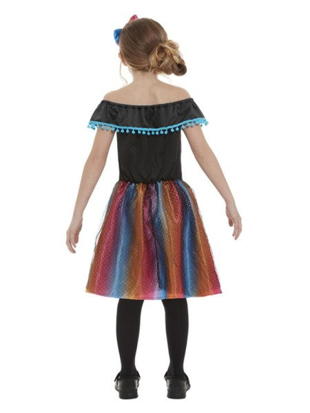 Strój dziecięcy na meksykański Dzień Śmierci, w komplecie: kolorowa sukienka i opaska na głowę, rozmiar 116cm