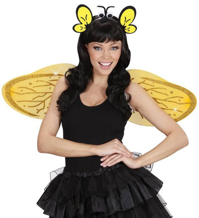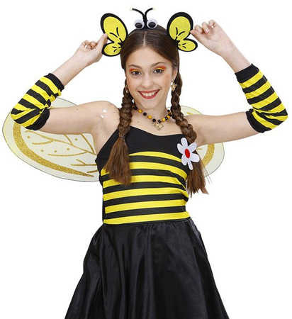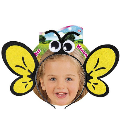 Opaska lekka, elastyczna. Nie uciska głowy. Wykonana z plastiku, do której przymocowane są skrzydełka osy. wysokości ok. 9 cm; w kolorze żółto-czarnym. Skrzydełka wykonane są z filcu. W centralnej części doklejone są oczka i czułka.