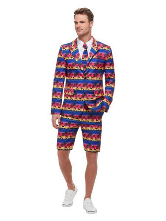 Garnitur Flamingo Suit, Hawajska Impreza, w komplecie: marynarka, spodenki i krawat; strój wielokolorowy, rozmiar XL