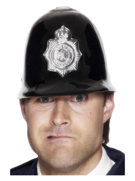 Hełm Policjanta, Czapka, Nakrycie głowy, Policjant, plastikowy hełm z odznaką, kolor czarny