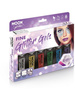 Delikatny Żel brokatowy Zestaw Make up Karnawał, 6 sztuk w opakowaniu, kolory: srebrny, złoty, czerwony, zielony, niebieski, fioletowy, 12ml