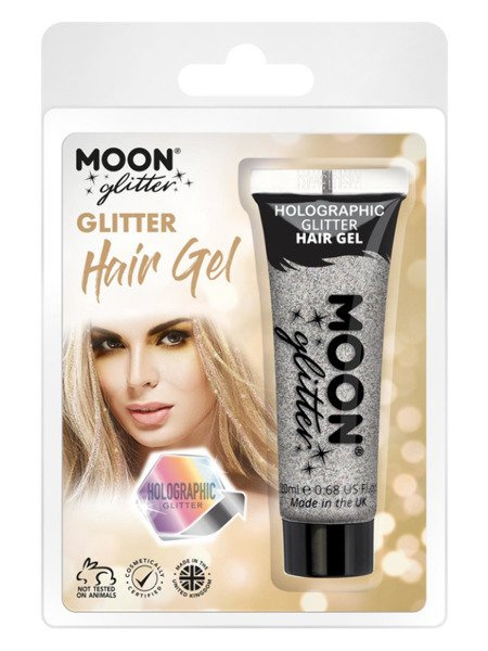 Żel do włosów holograficzny brokatowy, karnawał, kolor srebrny, produkt w opakowaniu, 20ml