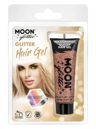 Żel do włosów holograficzny brokatowy, karnawał, kolor różowe złoto, produkt w opakowaniu, 20ml