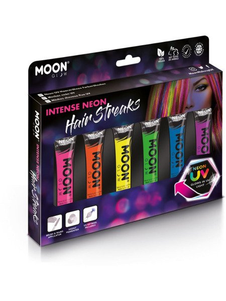 Zestaw 6 x kolorowe pasemka, barwnik do włosów UV, opakowanie zawiera 6 barwników w neonowych kolorach: różowy, pomarańczowy, żółty, zielony, niebieski, fioletowy, 15ml