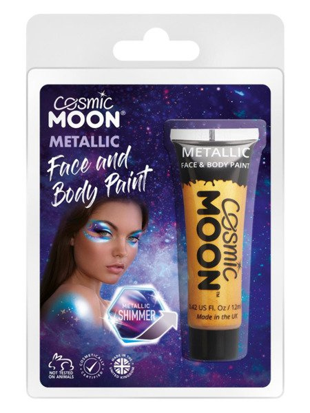 Farba do twarzy i ciała, make up, charakteryzacja, metaliczny połysk, kolor złoty, produkt w opakowaniu, 12ml