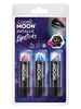 Zestaw szminek metalicznych, pomadki, make up, 3 szt. w opakowaniu, metaliczny połysk, kolory: różowy, fioletowy, niebieski, 5g