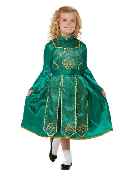 Zielona sukienka z brokatowym celtyckim wzorem.