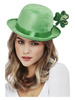 Deluxe Paddy's Day Bowler Hat, Velour, with Shamrock Motif