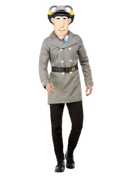 Szary płaszcz z kołnierzem oraz imitacją koszuli z krawatem.