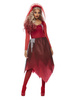 Sukienka wykonana z materiału w odcieniach czerwieni.