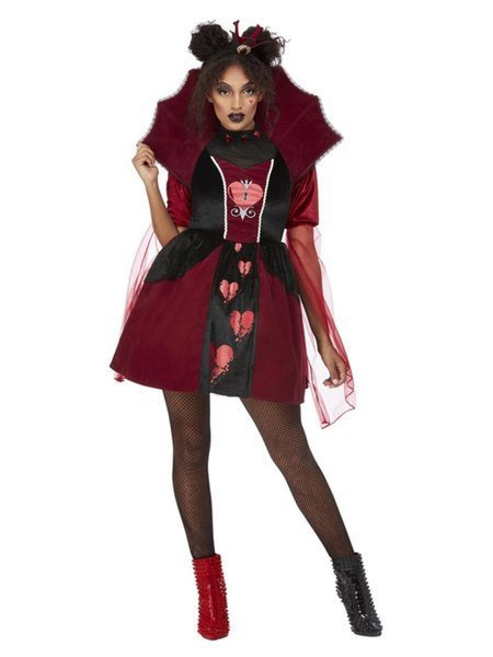 Strój w kolorze bordowo-czarnym.