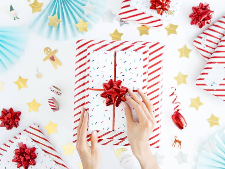 Papier do pakowania - Posypka w kolorze białym z kolorowym i złotym metalizowanym nadrukiem, wymiary ok 70 x 200 cm.(1 karton / 50 szt.)