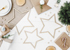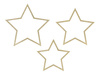 Zawieszki dekoracyjne Gwiazdy wykonane z drewna z brokatem z obu stron w kolorze złotym, zestaw zawiera 3 gwiazdy, wymiar od ok. 35 x 33 cm do ok. 26.5 x 25 cm.(1 karton / 20 op.)(1 op. / 3 szt.)