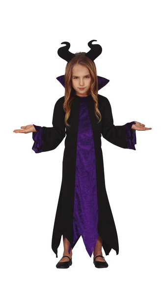 Suknia z szerokimi rękawami i wysokim kołnierzem.