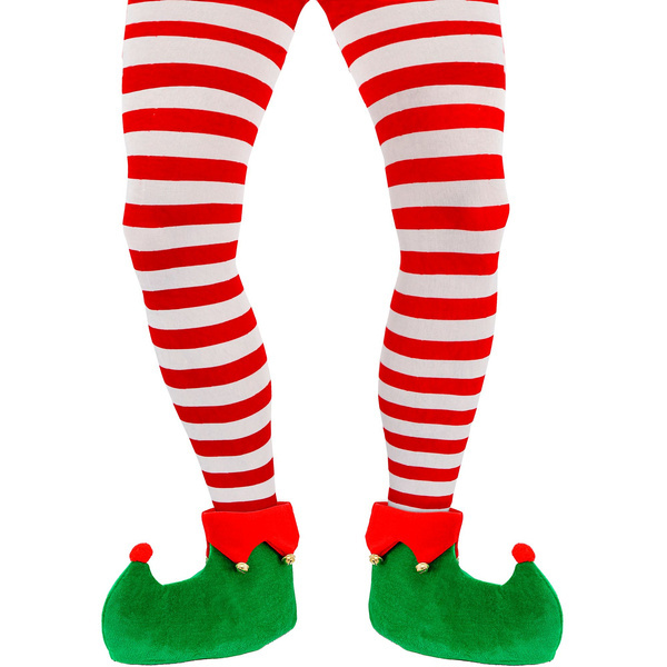 Nakładki na buty elfa wykonane z materiału imitującego welur w kolorze zielonym.