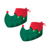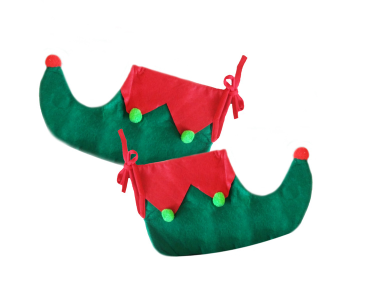 Zdobione czerwoną wstawką oraz zielonymi pomponami.