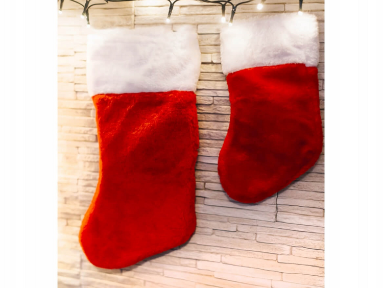 Skarpeta posiada przyszyte ucho, aby można ją było powiesić - np. na kominku lub na drzwiach.