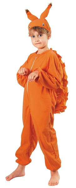 Strój składa się kombinezonu z nakryciem głowy w kształcie głowy wiewiórki.