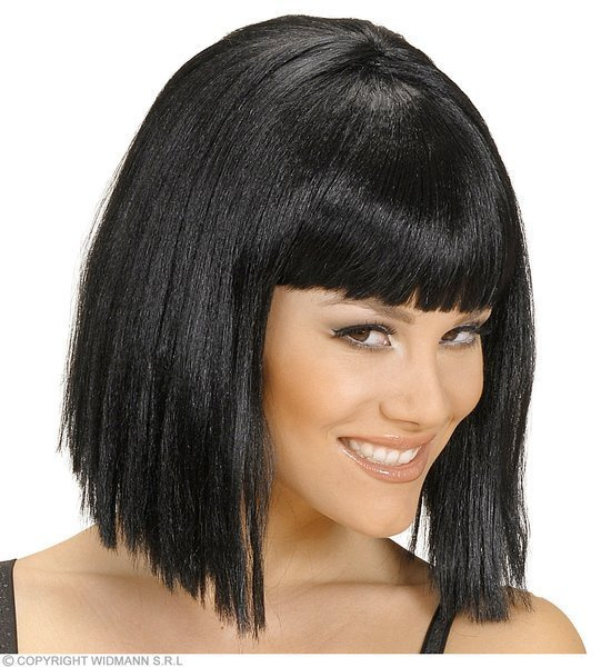 Włosy są błyszczące, stylizowane na fryzurę retro.