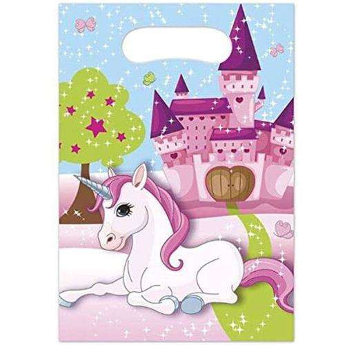Torebki foliowe z nadrukowanym jednorożcem i zamkiem.