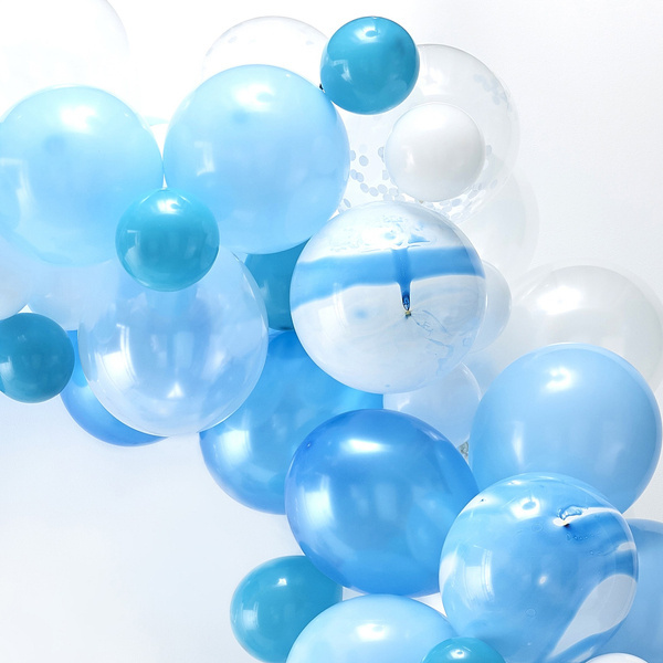 Girlanda balonowa w kolorze białym, perłowym, niebieskim.