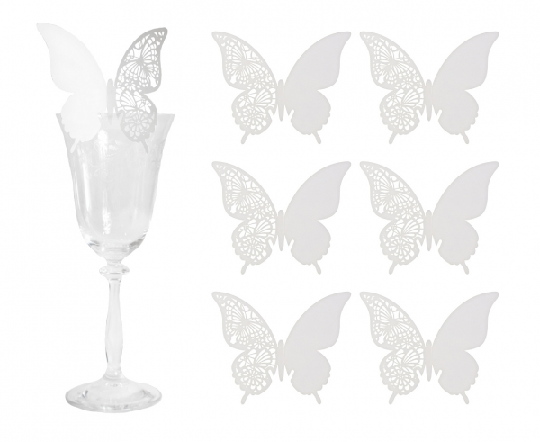 WINIETKI WIZYTÓWKI NA KIELISZKI MOTYLKI BIAŁE 6 SZT