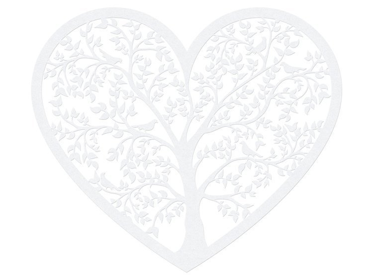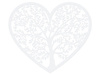 Dekoracje papierowe w kształcie Serc, wycinane z białego, grubego papieru.