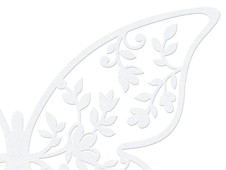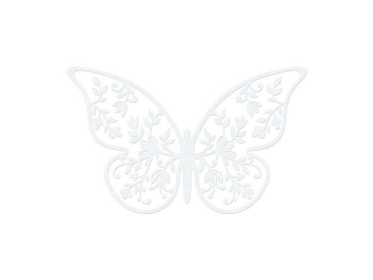 Dekoracje papierowe w kształcie Motyli, wycinane z białego, grubego papieru.
