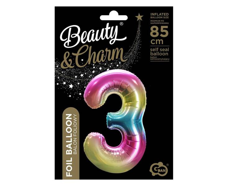 Balon foliowy w kształcie cyfry 3.