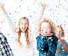 Z tuby wylatują pastelowe kolorowe papierowe kółeczka.