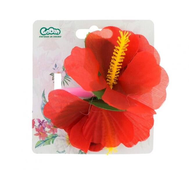 Spinka do włosów z czerwonym kwiatem.