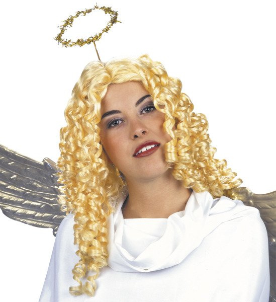 Peruka w kolorze: żółtego blondu. Włosy mocno lokowane; błyszczące. Peruka mocowana na elastycznej siatce.