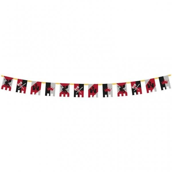 Papierowy baner z flagami z motywem rycerskim.