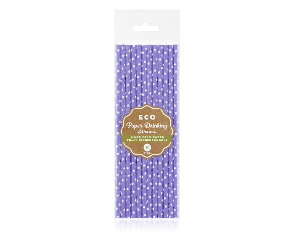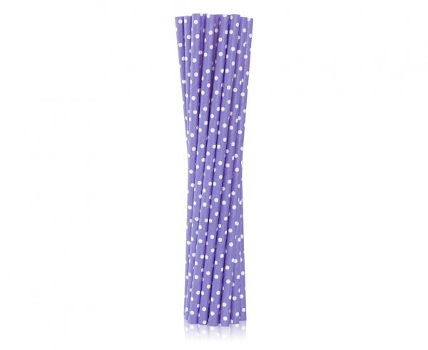 Słomki papierowe w kolorze fioletowym w białe groszki.