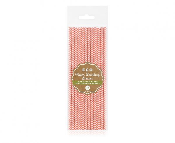 • Słomki papierowe w kolorze jasnoróżowym w białe szlaczki.
