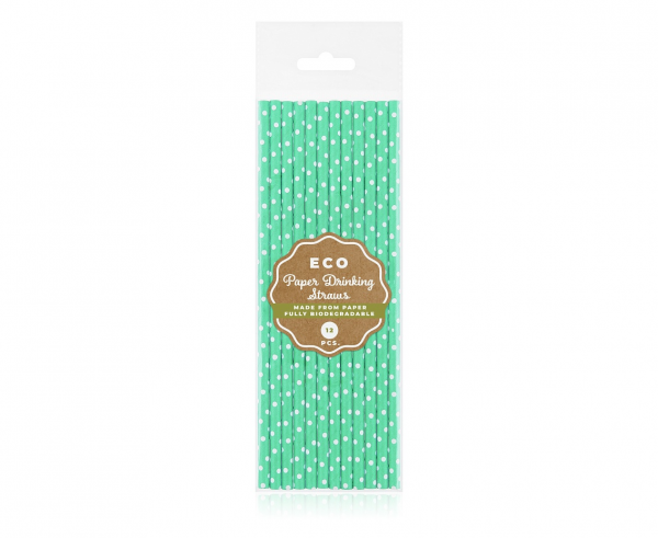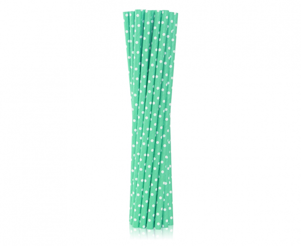 Słomki papierowe w kolorze zielonym w białe groszki.