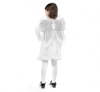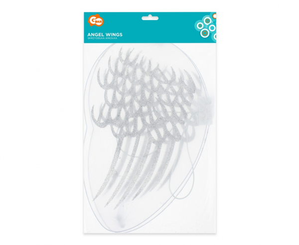 Skrzydełka wykonane z białej cienkiej siateczki zdobionej srebrnym brokatem.