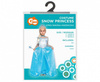 Błękitna satynowa sukienka z tiulowymi rękawkami.