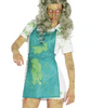 Sukienka w kolorze białym, fartuch - zielony, zawiązywany z tyłu.