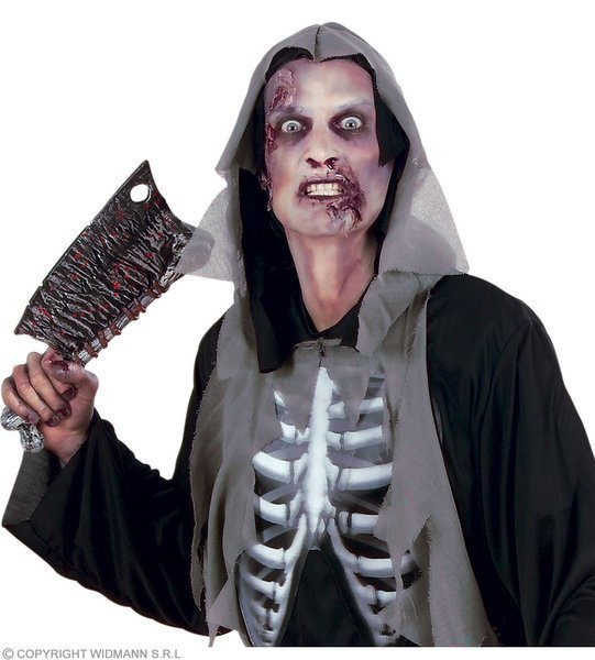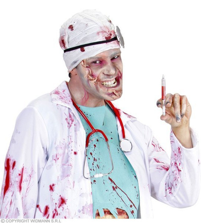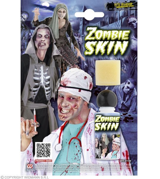 Butelka produktu z gąbką używana do profesjonalnego makijażu dającego możliwość powstania efektu: cięć, blizn oraz wysypki skórnej.