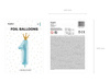 Metalizowany balon foliowy Cyfra 1 w kolorze błękitnym z koroną w kolorze złotym.